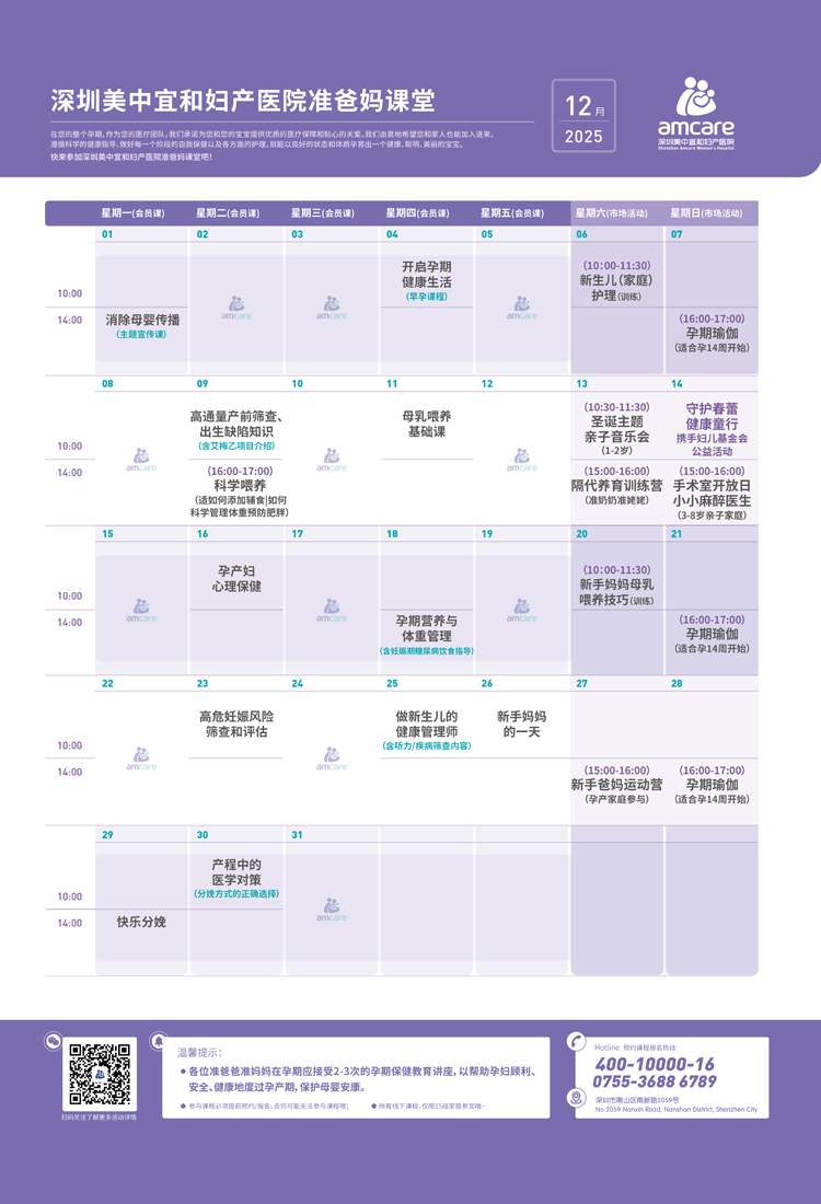 12月份妈妈课表